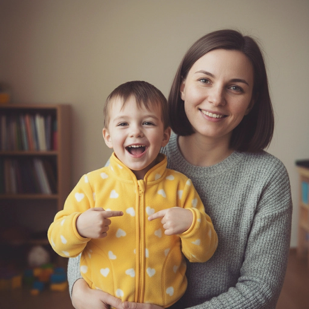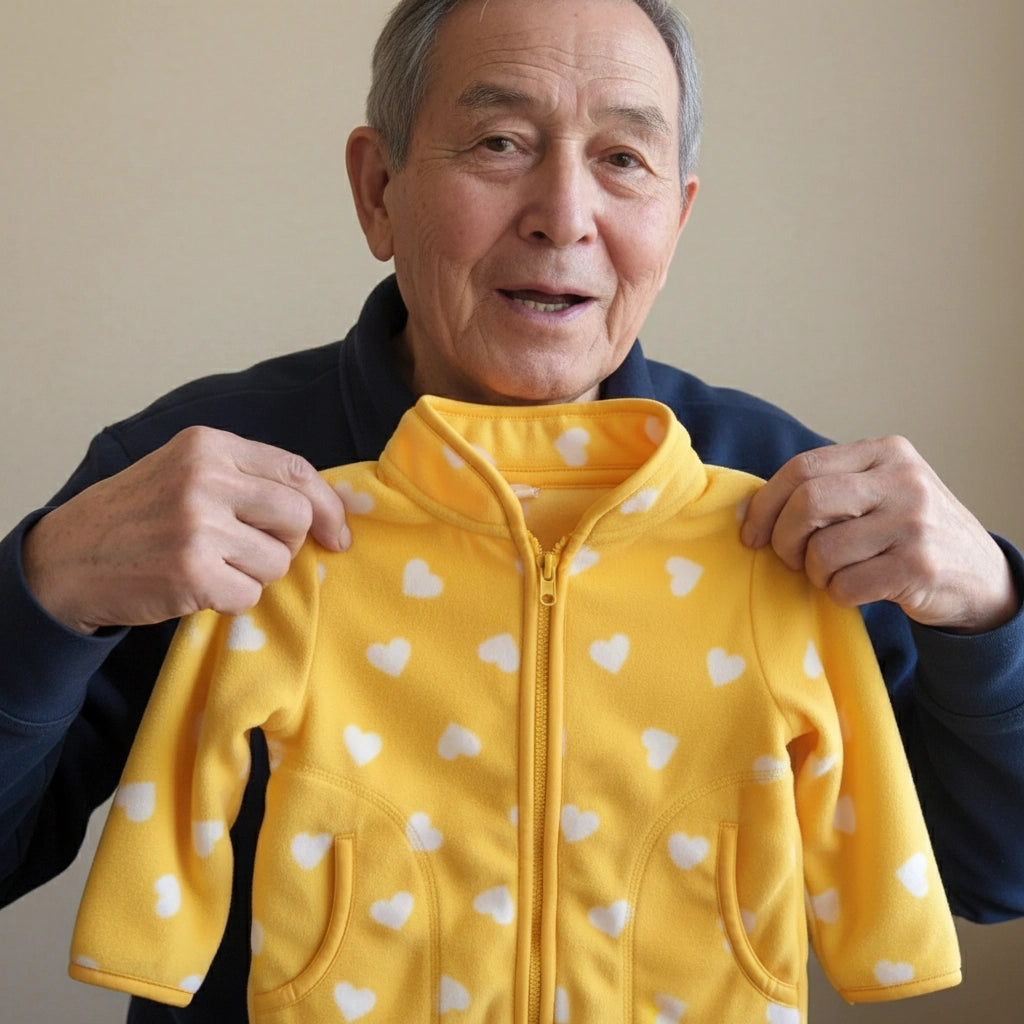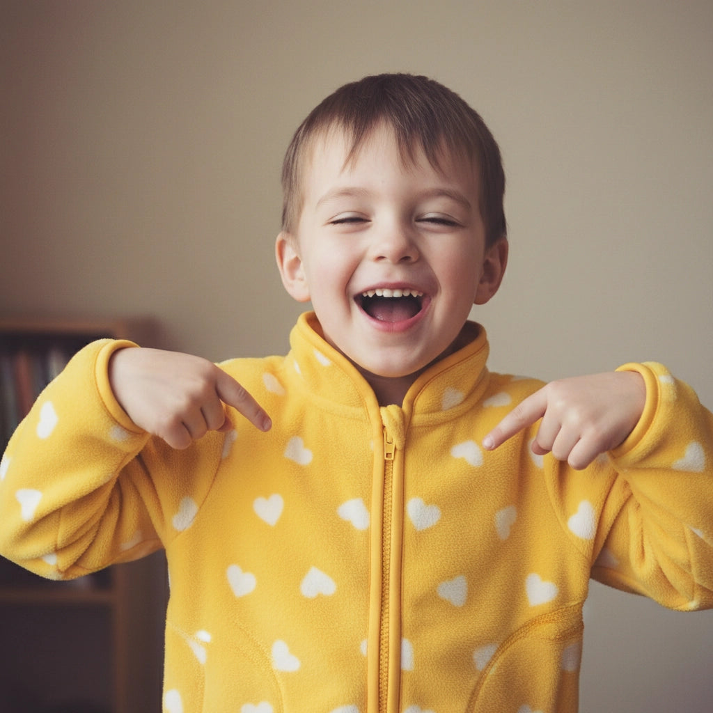 "Min son blir så glad varje gång han får ha på sig den här jackan. Färgen och hjärtana gör den extra speciell."