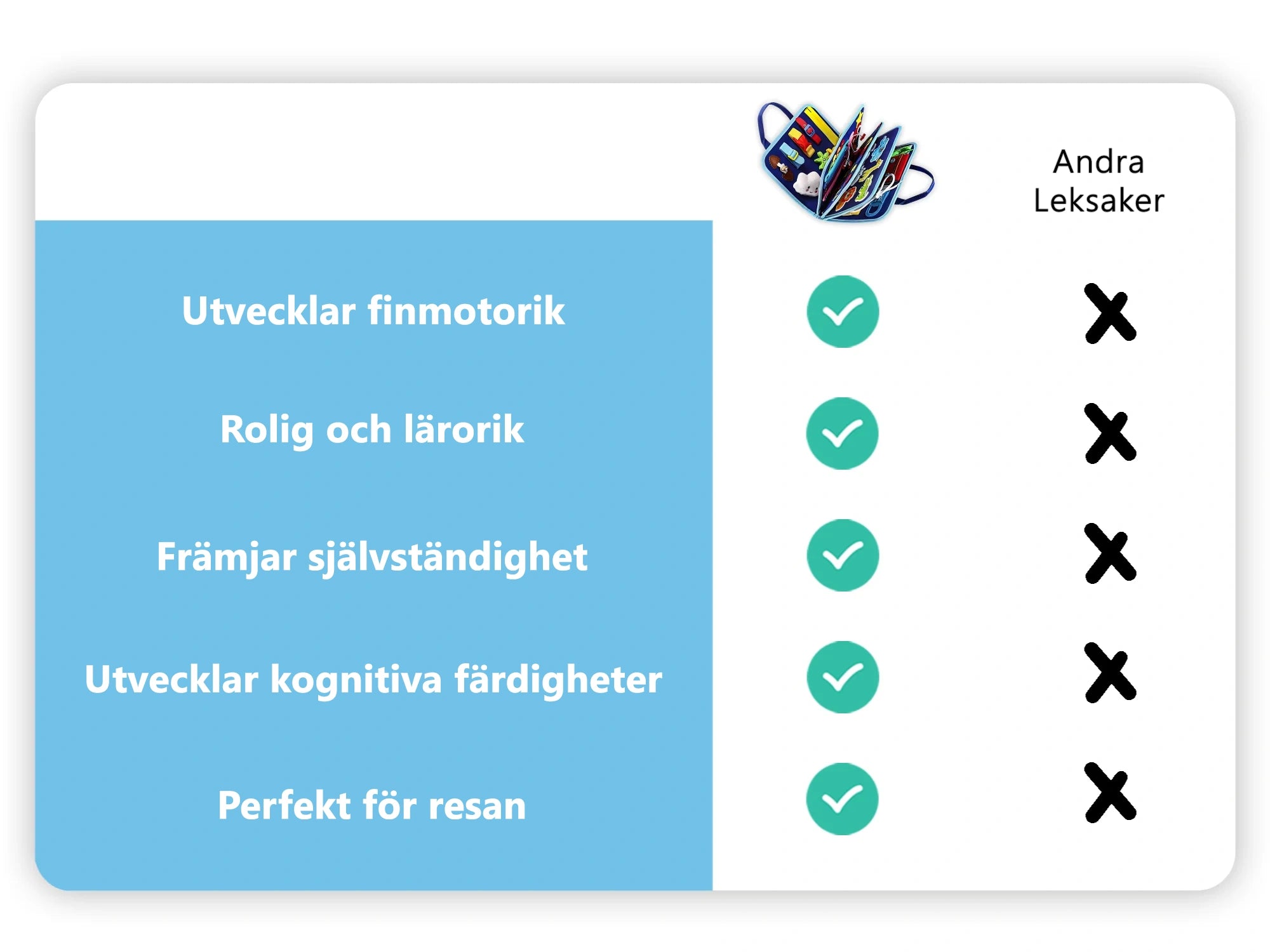 "Min son älskar att börja dagen med sin aktivitetsbok! Den håller honom sysselsatt och nyfiken varje gång. Vi älskar att sitta tillsammans och leka. Han lär sig knyta, räkna och peka ut djuren. Den är verkligen både rolig och lärorik."