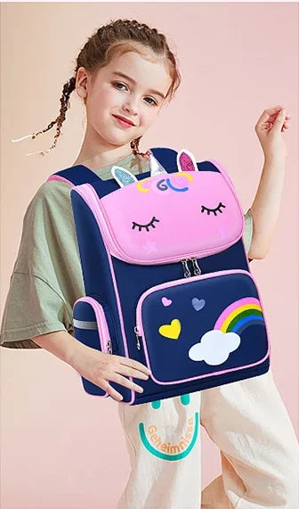 Ge ditt barn en magisk skolstart med vår ergonomiska unicorn ryggsäck i charmig blå och rosa design. Perfekt för lågstadieelever, denna ryggsäck kombinerar lekfullhet och funktion. Tillverkad i högdensitets, vattentätt polyestertyg håller den skolböcker, pennor och vattenflaskor torra även vid regniga dagar.
