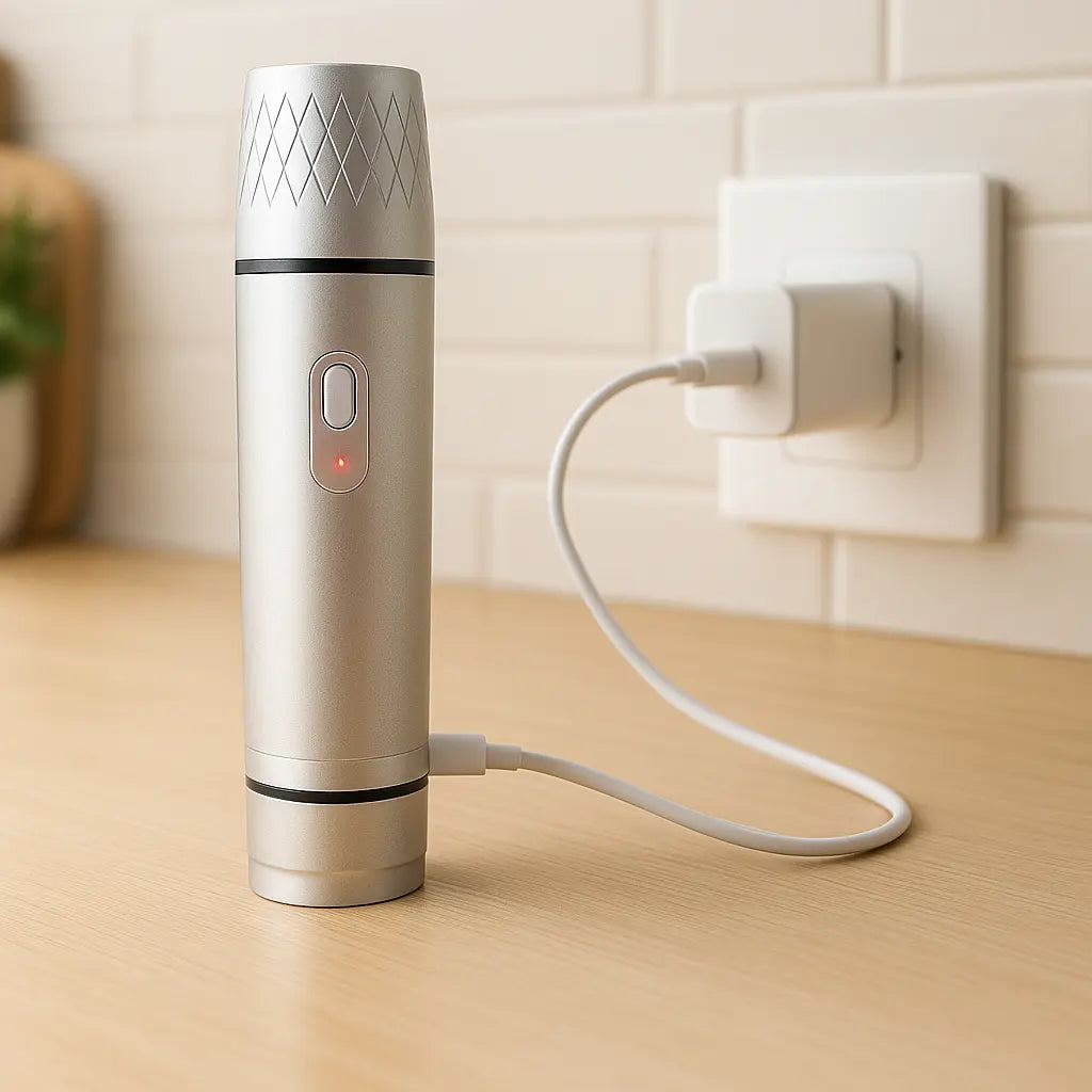 Anslut till valfri USB-källa – väggadapter, powerbank eller dator. Den flexibla laddningen gör den enkel att använda både hemma och på resan. En tydlig indikator visar när den laddas.