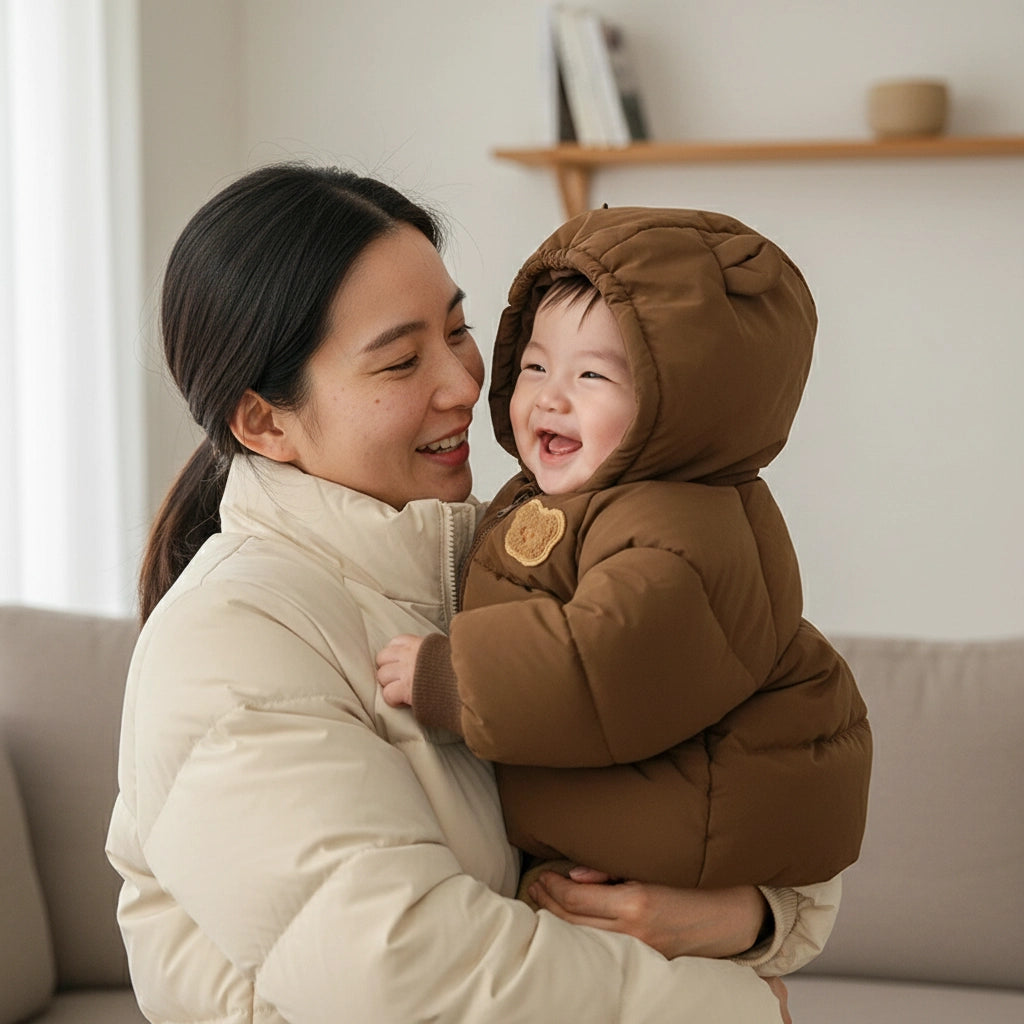 Brun Vadderad Barnjacka med Huva och Öron - Björn