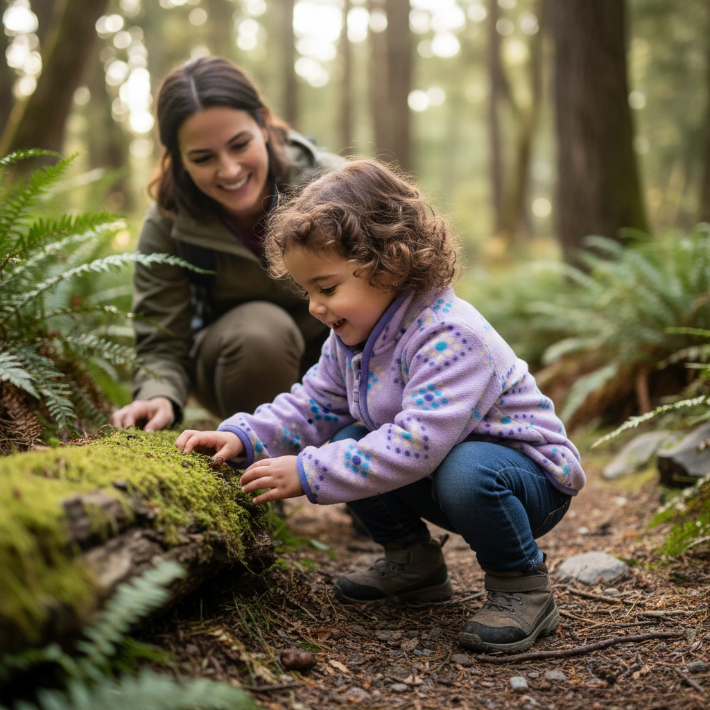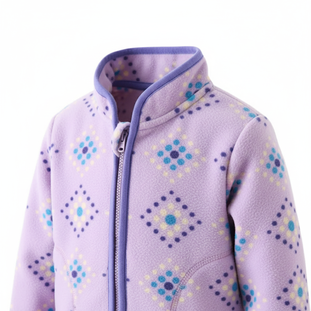 Jackan är gjord för nyfikenhet och utforskande. Tålig fleece som klarar lek i naturen.