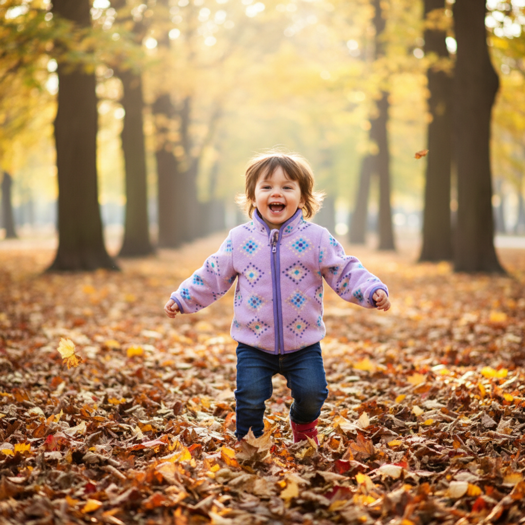 Håller värmen i kalla höstdagar men är ändå lätt och smidig. Perfekt för utomhuslek och rörelseglädje.