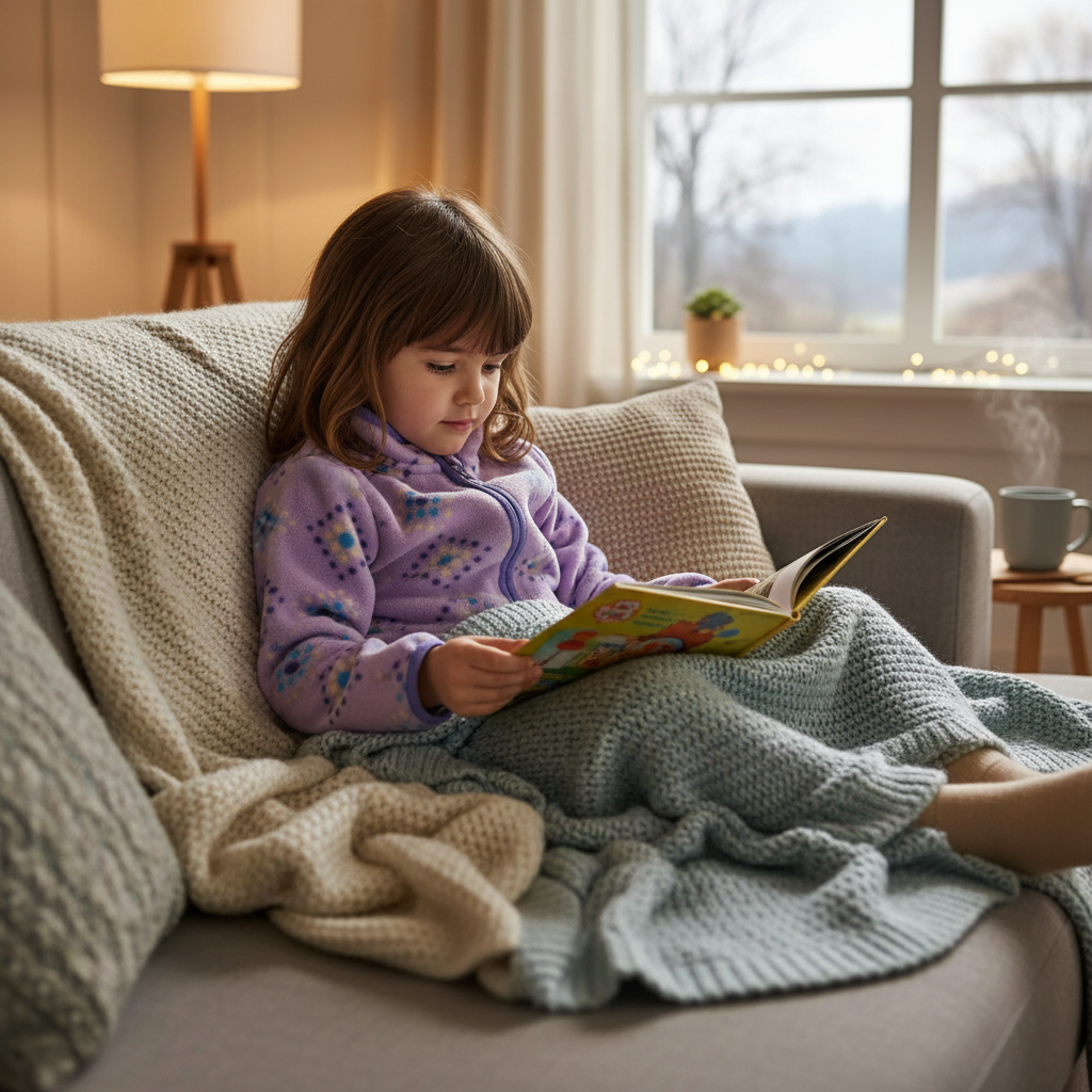"Min dotter älskar att krypa upp i soffan med sin nya fleece. Den är både varm och mjuk, perfekt för mysiga hemmastunder."