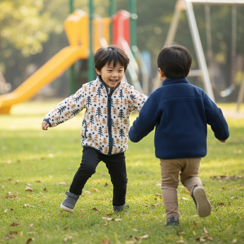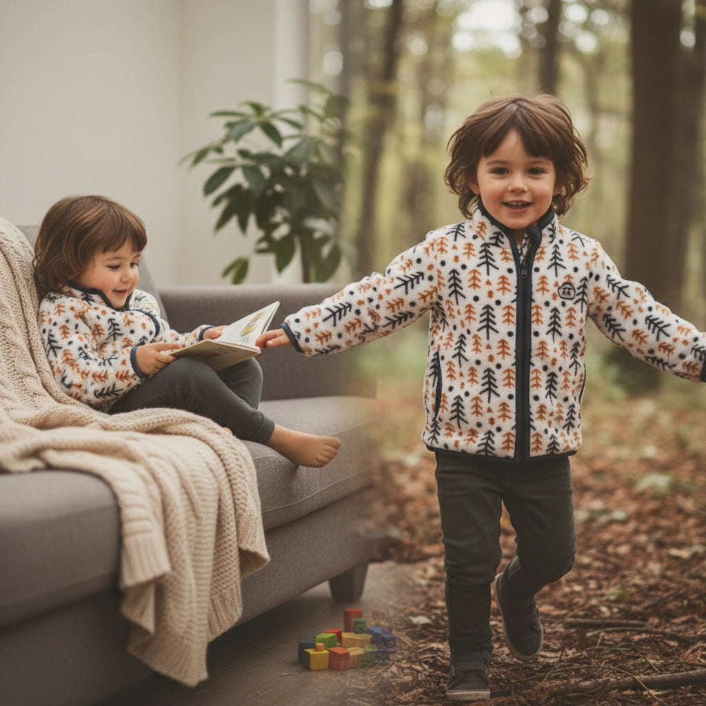Barnen kan springa, hoppa och utforska helt obehindrat. Det mjuka fleecetyget håller dem varma men andas samtidigt. Tåliga sömmar gör att plagget klarar vardagens alla äventyr.