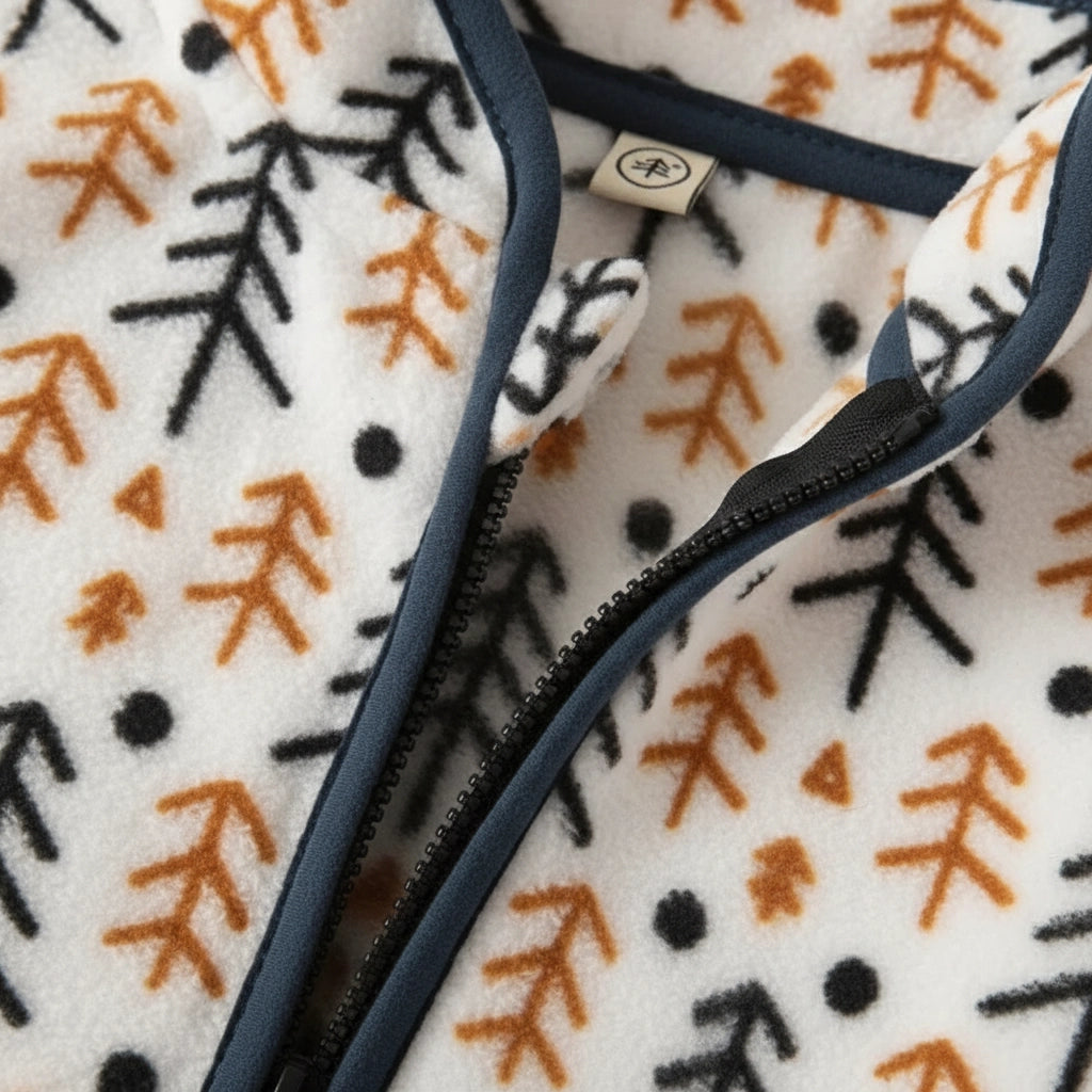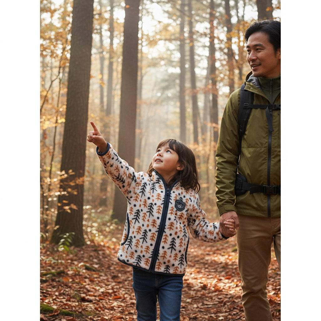 Låt ditt barn utforska naturen i stil med denna vita fleecejacka dekorerad med ett vackert trädmönster. Tillverkad av högkvalitativ och mjuk fleece, säkerställer denna jacka att ditt barn håller sig varmt och bekvämt under kyliga höst- och vinterdagar. Trädmotivet i dova höstfärger ger jackan en naturlig och lugnande estetik, perfekt för små naturälskare. Jackan är utrustad med en dragkedja framtill för enkel på- och avklädning, samt elastiska ärmslut för att hålla värmen inne. Perfekt för utomhuslek och promenader i naturen.